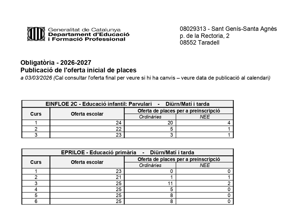 Oferta Inicial de places curs 26-27